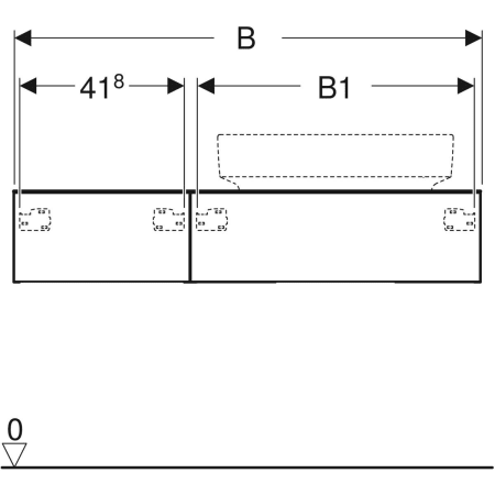 Geberit VariForm cabinet for lay-on washbasin, with two drawers, shelf surface and trap