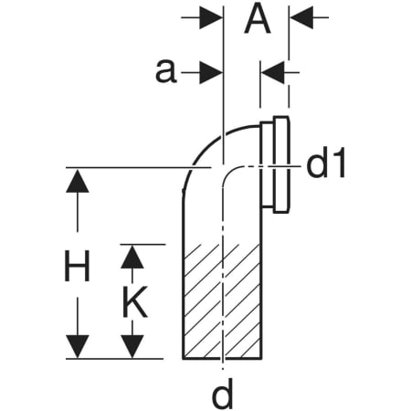 Geberit HDPE connection bend 90° for wall-hung WC, with extension