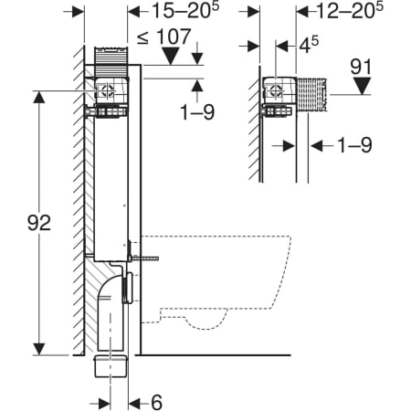 Geberit Kombifix element for wall-hung WC, 98 cm, with Omega concealed cistern 12 cm
