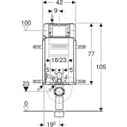 Geberit Kombifix element for wall-hung WC, 109 cm, with Sigma concealed cistern 8 cm, with leg supports