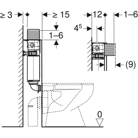 Volume de chasse, réglage d’usine 6 / 3 l |