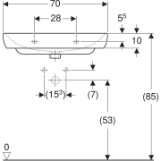 | Trou de robinetterie | Au centre |