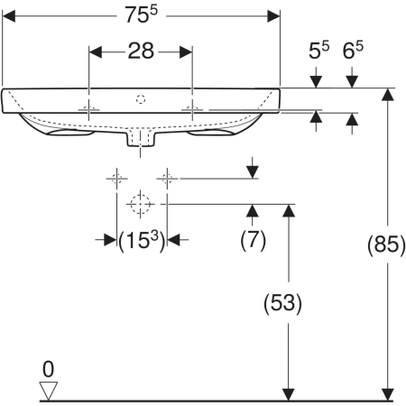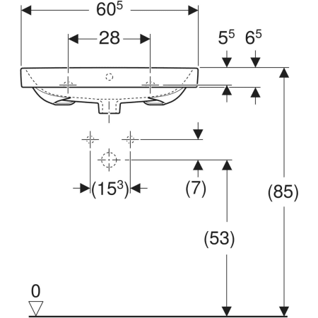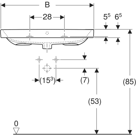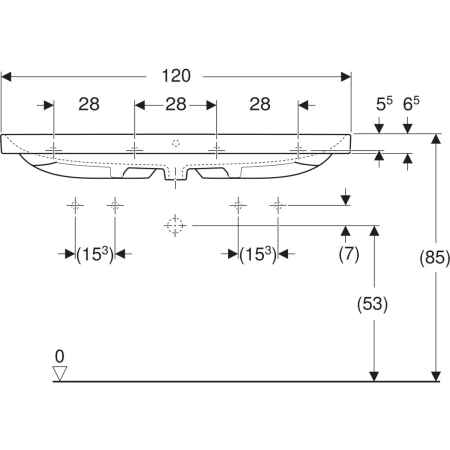 | Trou de robinetterie | Au centre |